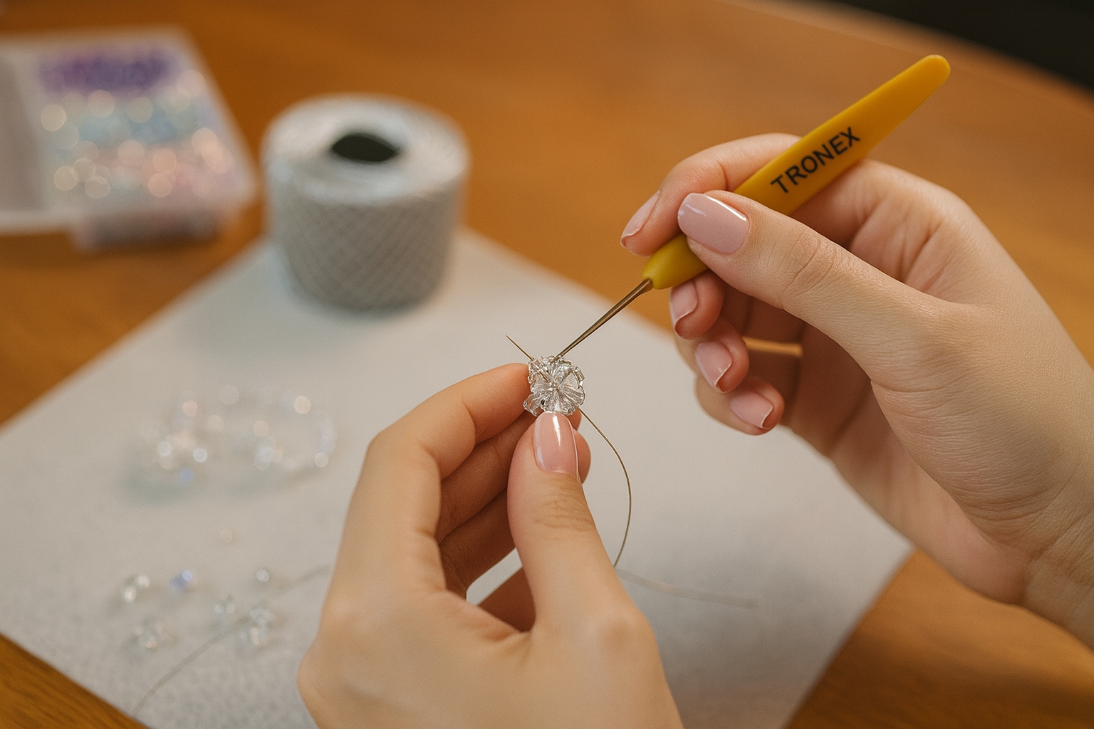 アクセサリー制作部門では、ビーズなどを使って世界にひとつだけのアクセサリーを作っています。集中してひとつの作品を完成させる時間は、自信や達成感につながります。イベントではお客様と直接お話ししたり、仲間と協力して販売を行ったりと、社会で役立つ経験を積むこともできます。
